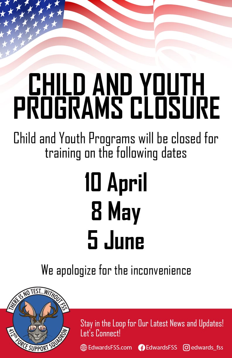 The Edwards AFB Child Development Center welcomes children between the ages of six weeks and 5 years. Department of the Air Force Child Development Centers are designed to provide a safe, healthy, and nurturing environment for children and are uniquely designed to accommodate each child’s developmental level.