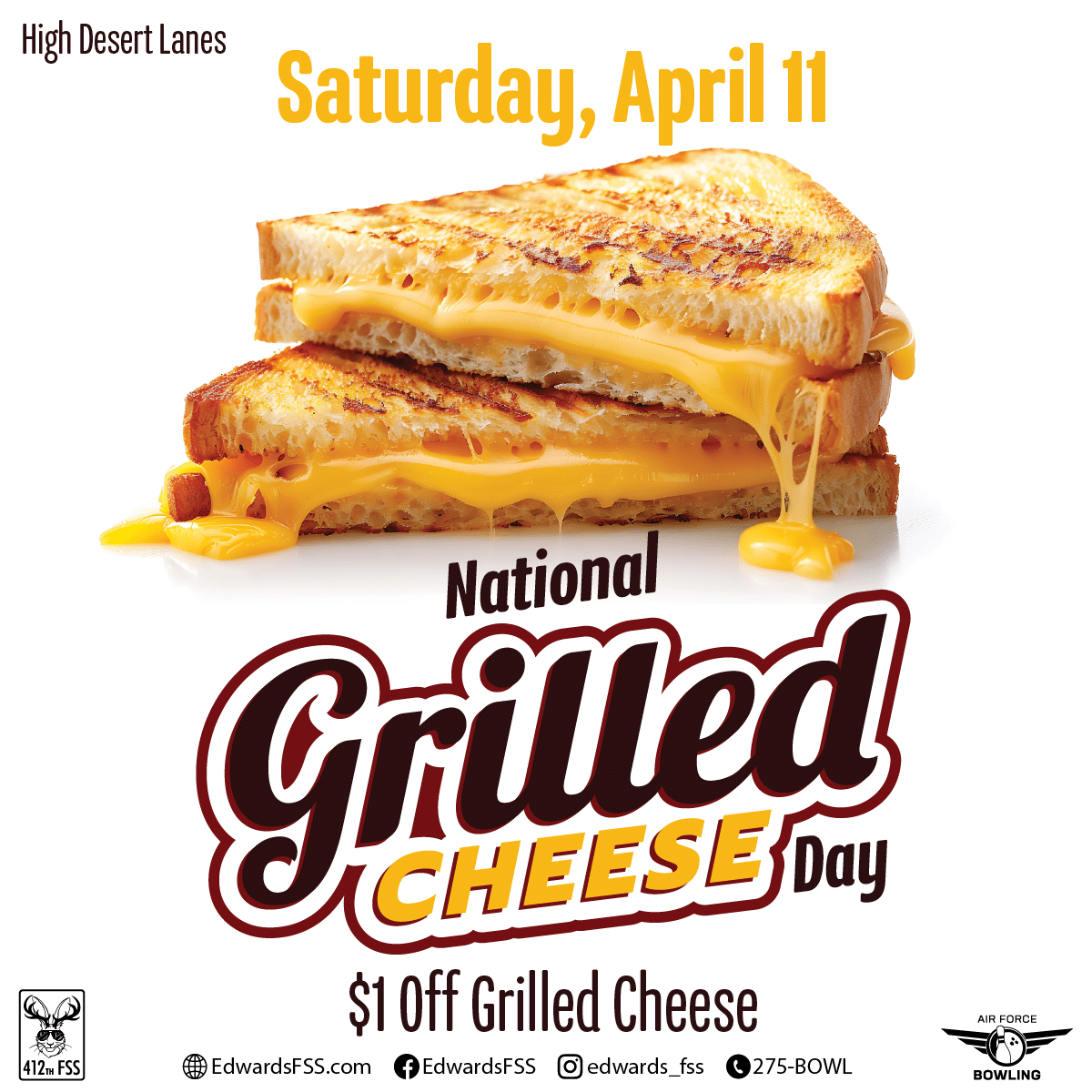 To celebrate National Grilled Cheese Day, enjoy $1 off grilled cheese sandwiches at High Desert Lanes!