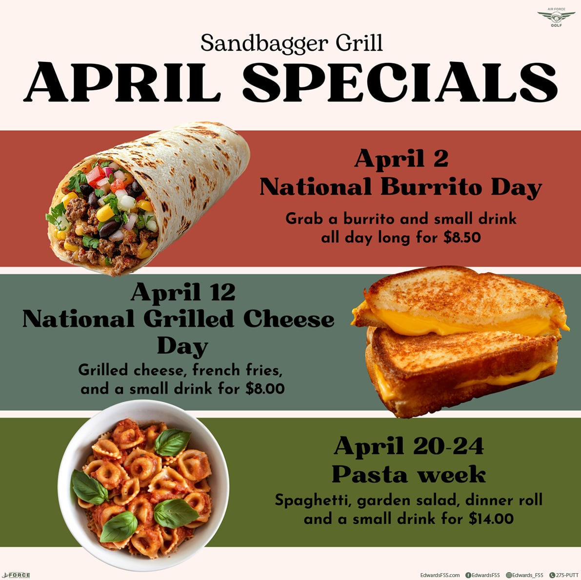 Check out Sandbagger Grill in April for some delectable food specials!